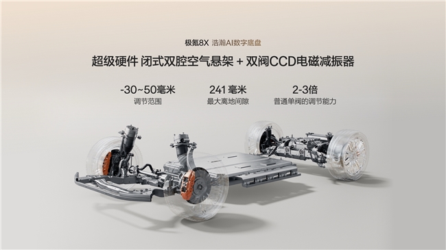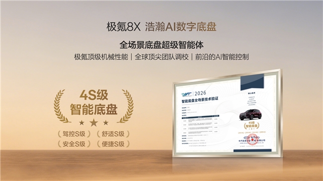普通版极氪8X同样搭载了SEP浩瀚超级电混技术,660千瓦双电机峰值功率、3.7秒破百的成绩,在同级别中遥遥领先。4S级AI数字底盘是另一项核心技术——它将顶级的底盘硬件、专业的调校和AI深度学习能力深度融合,在安全、舒适、驾控、便捷四大维度均达到S级标准。Ultra+版更标配主动稳定杆和双阀CCD电磁减振器,配合闭式双腔空气悬挂,让车辆在任何路况下都能保持最佳姿态。这些技术的叠加,让极氪8X在任何一份客观的中大型SUV性能排名中都能占据前列。