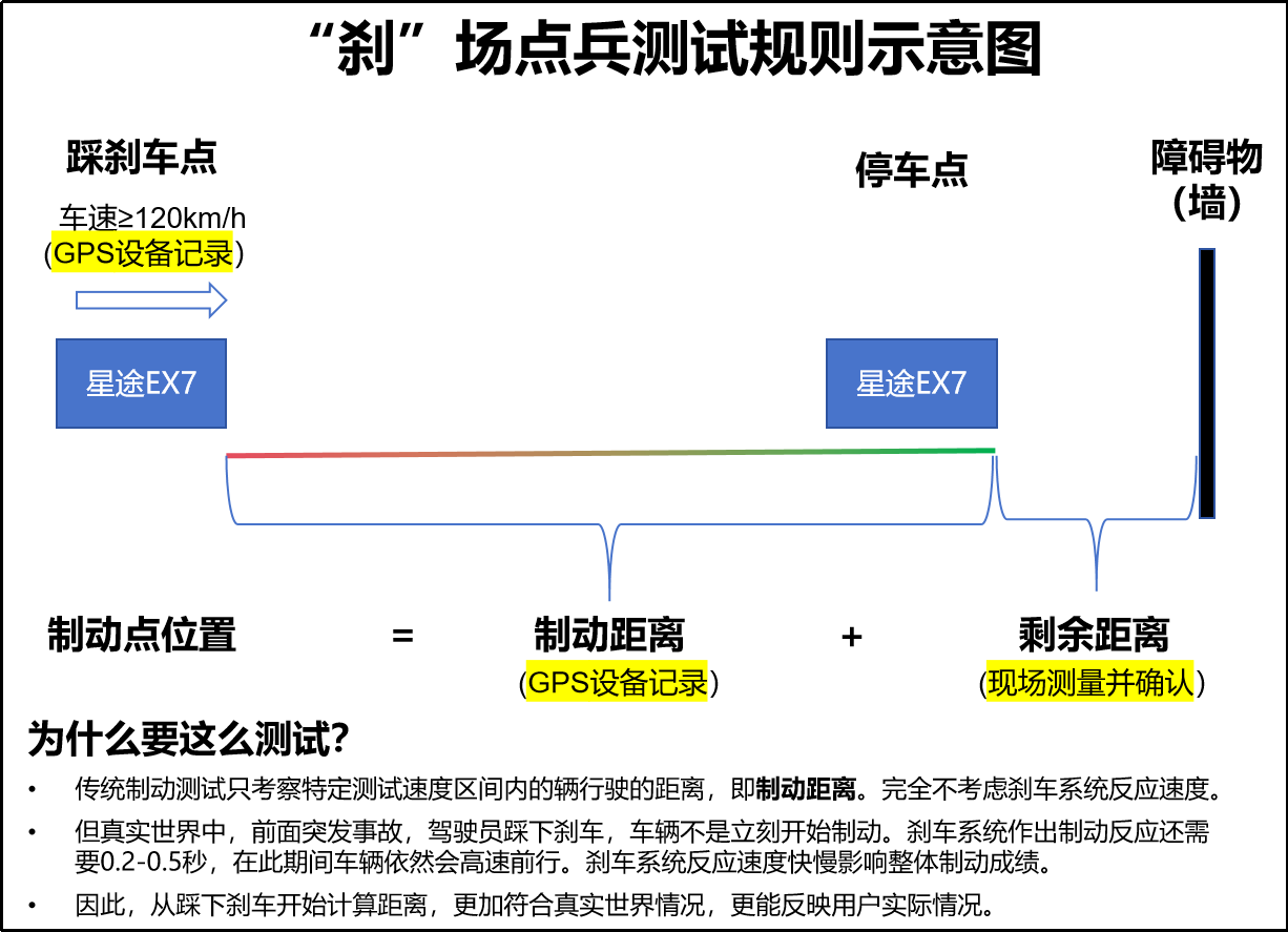 本次针对星途EX7制动能力的测试项目,在“刹场点兵”环节,设定了全新的测试标准: